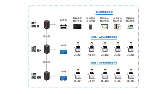 中心服務(wù)器、線體結(jié)構(gòu)圖、用戶終端組成三層架構(gòu),提升企業(yè)形象,節(jié)省企業(yè)資源。